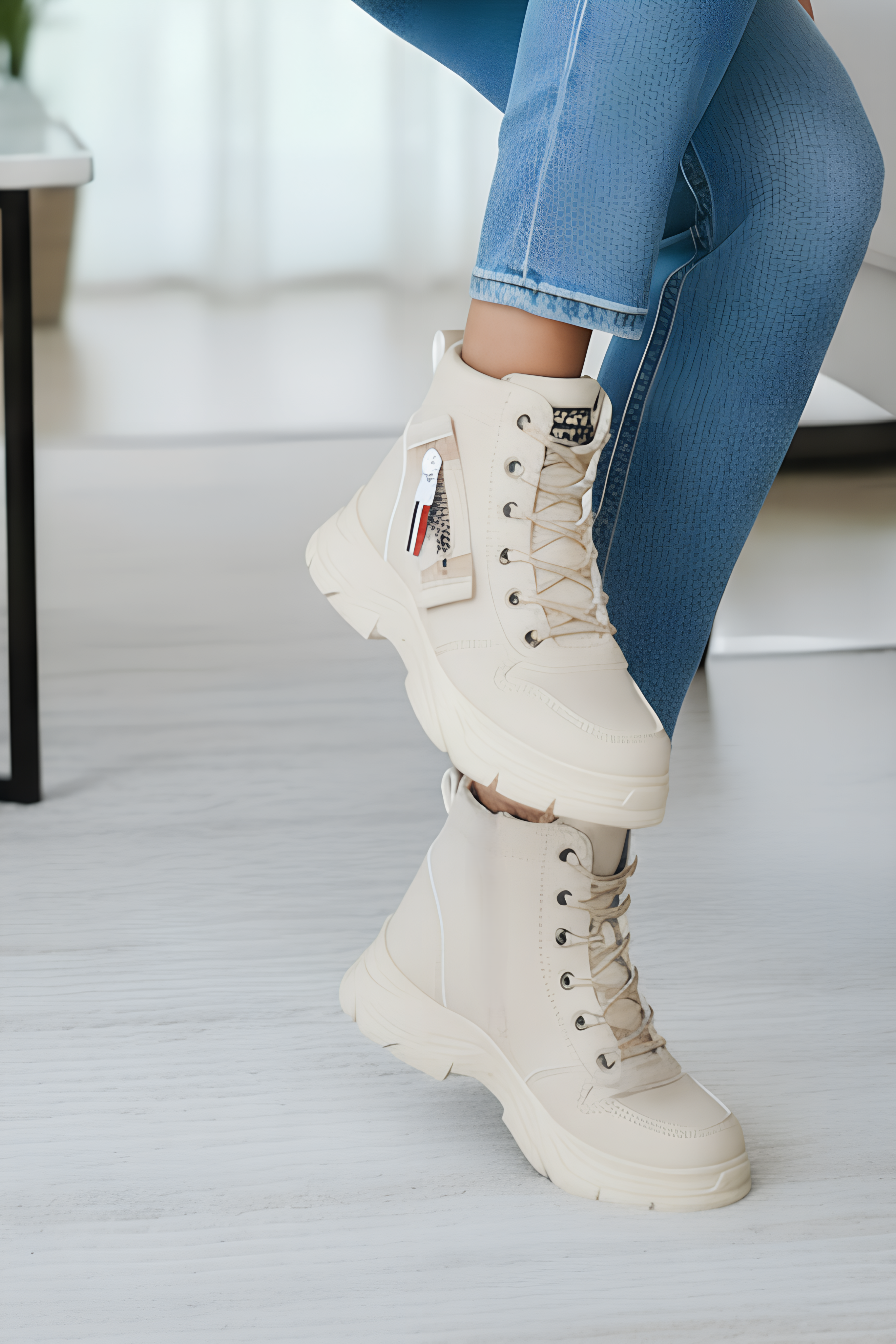 حذاء شتوي مبطن ضد الماء - بيج