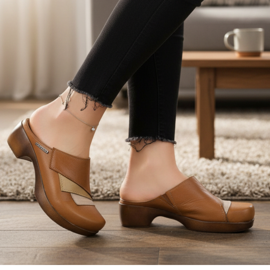 بابوج طبي جلد طبيعي 5 سم - عسلي