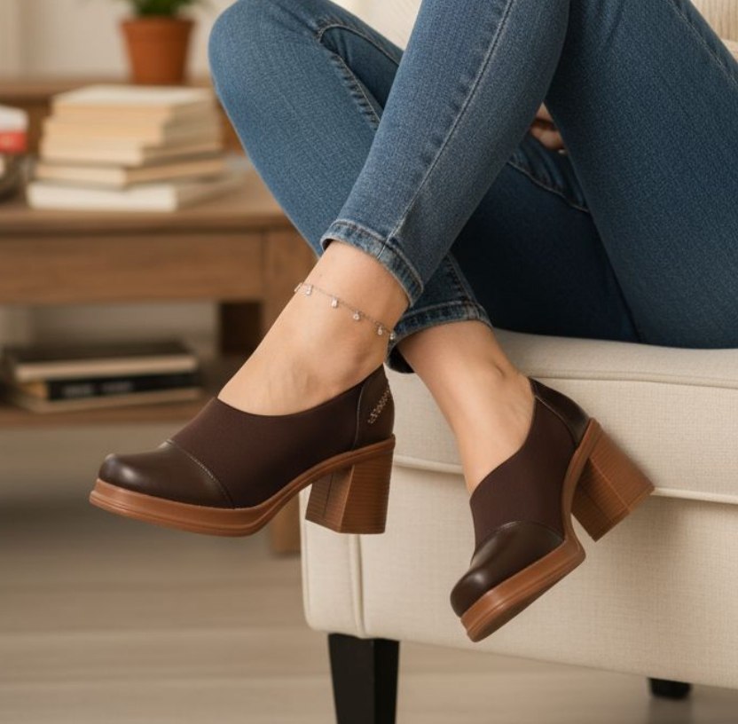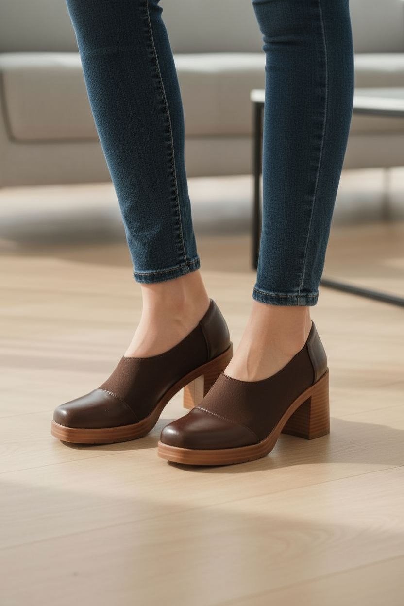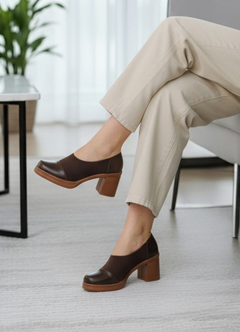 كندرة طبي جلد طبيعي كعب 7.5 سم - بني