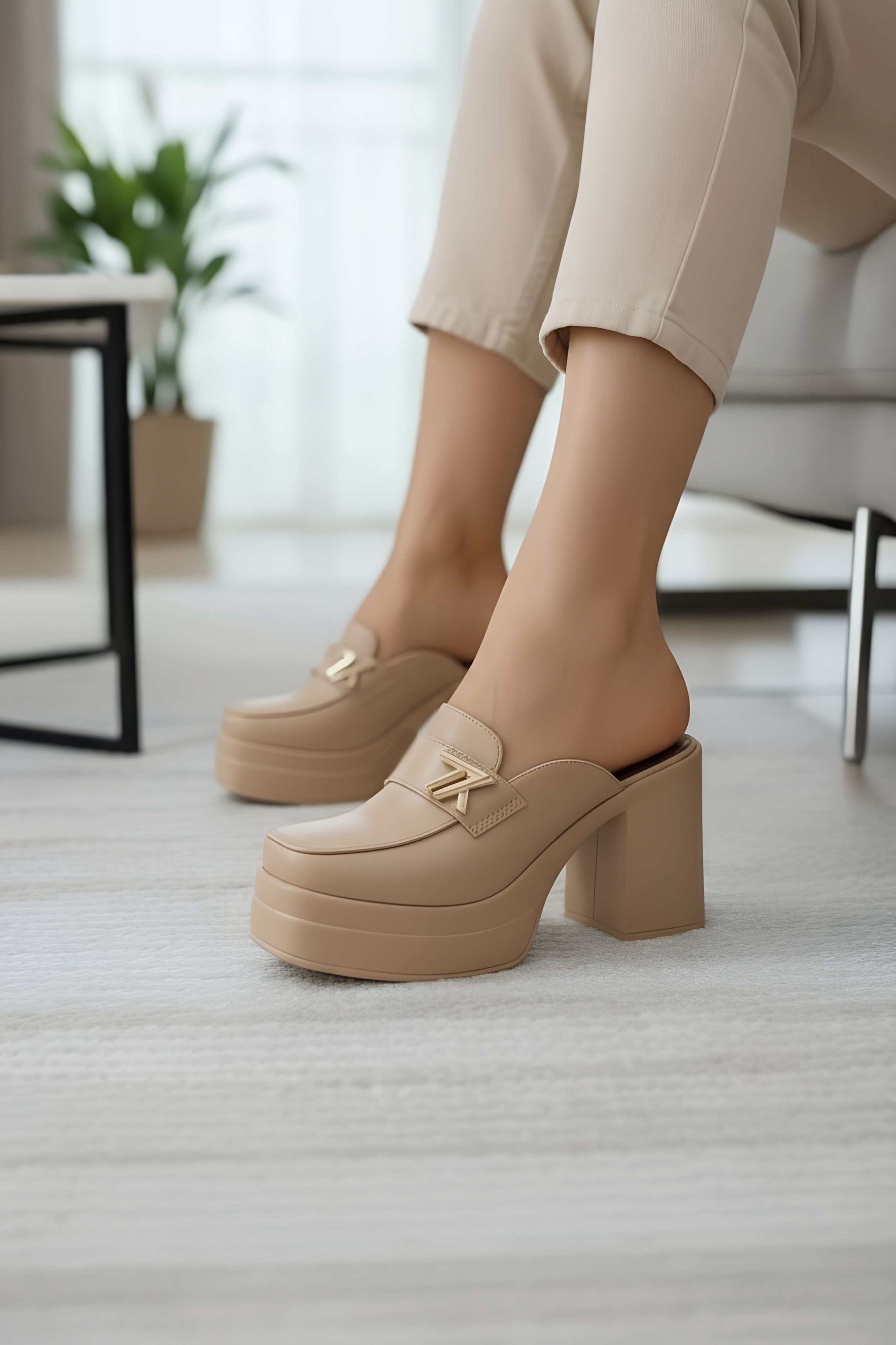 بابوج جلد طبييعي طبي 9سم - بيج