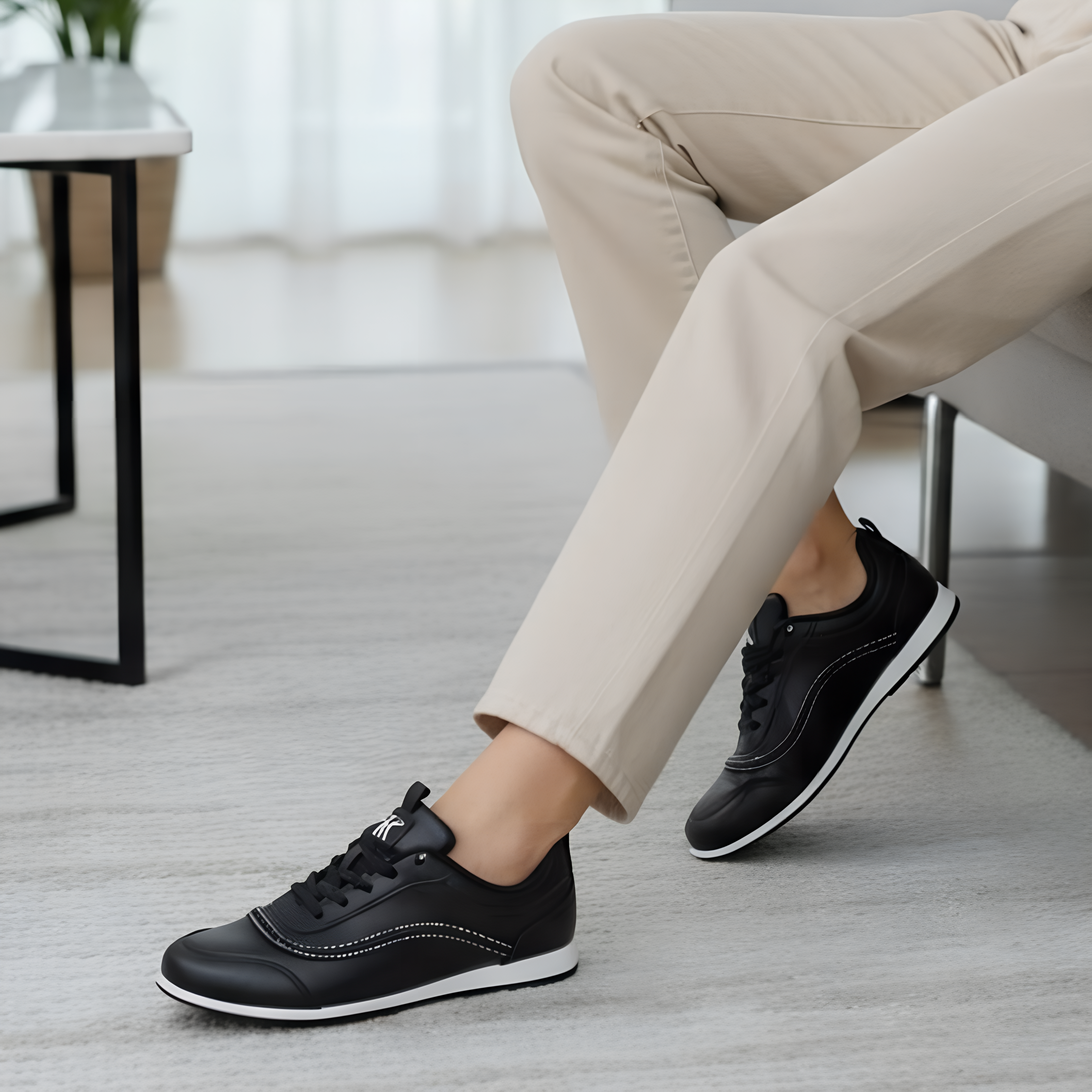 حذاء جلد طبيعي ضد الماء طبي - اسود سترس اسود