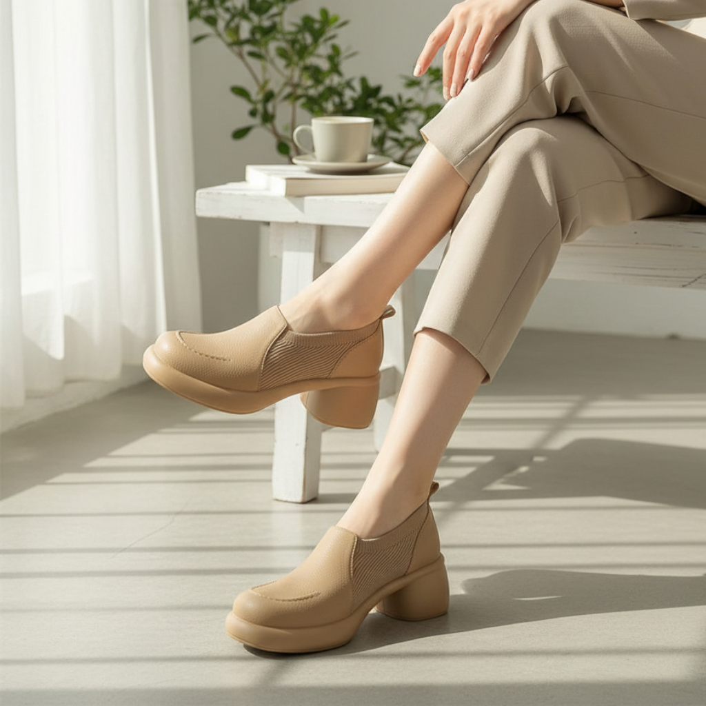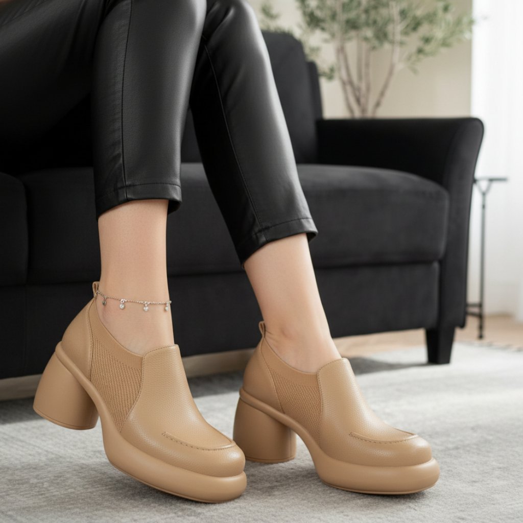كندرة كعب عريض اورتبيد - بيج