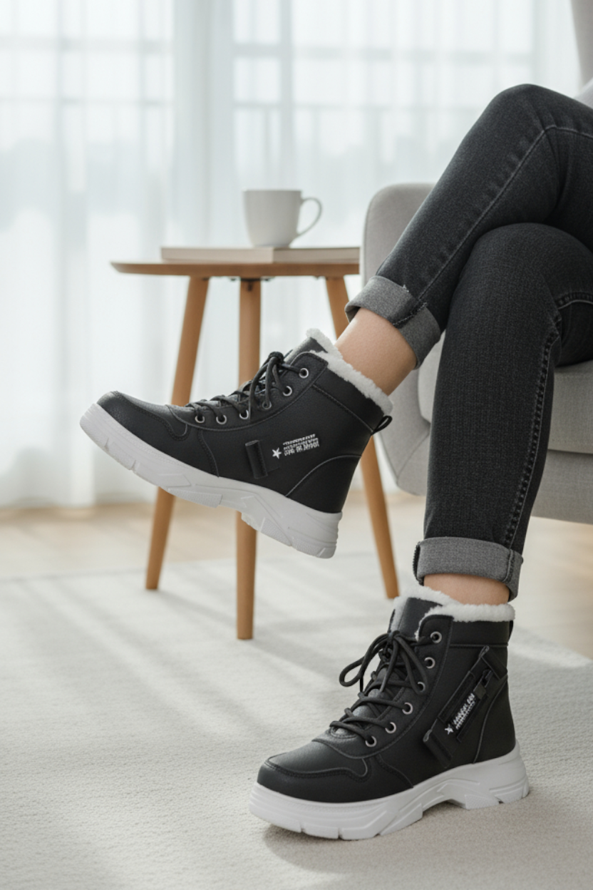 حذاء شتوي مبطن فرو ضد الماء - اسود