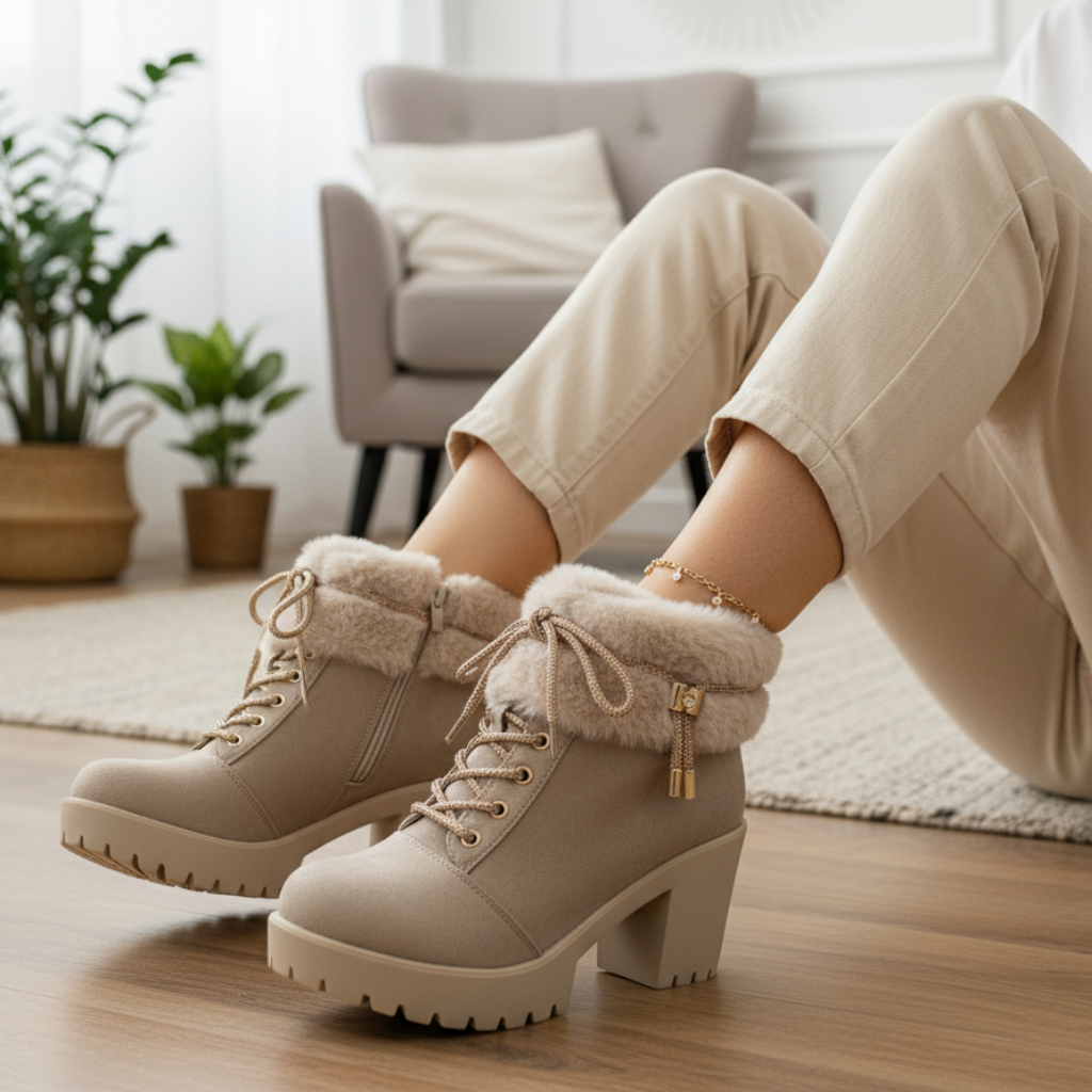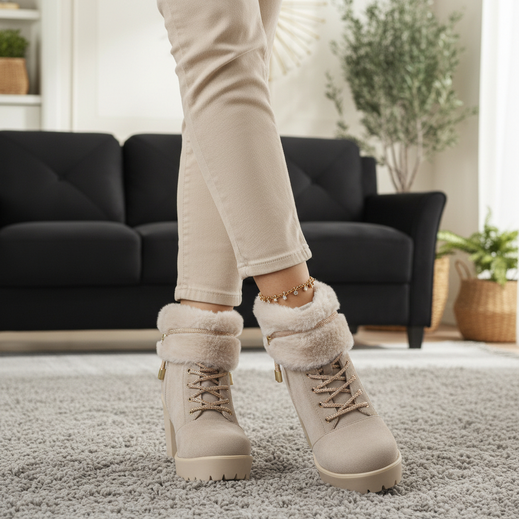 جزمة مبطن فرو 9 سم - بيج
