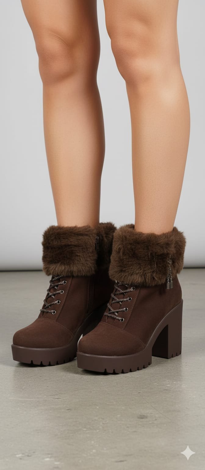 جزمة مبطن فرو 9 سم - بني