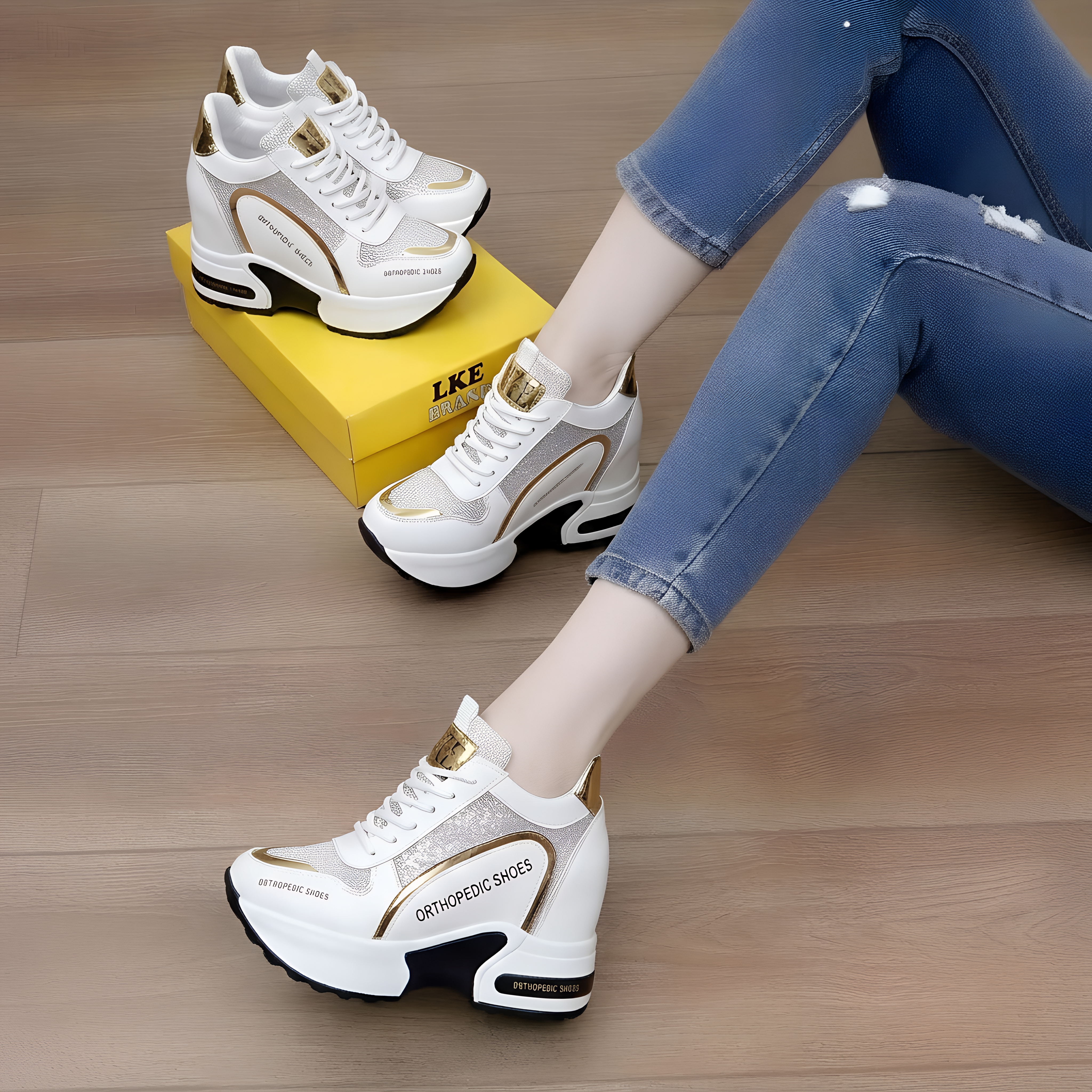 سبورت كعب مخفي 12 سم - ابيض ذهبي