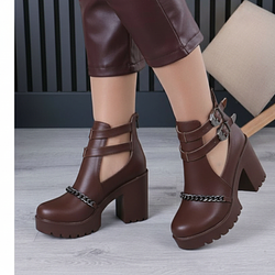 صندل كعب عريض 9 سم طبي سحاب خلفي - برجندي