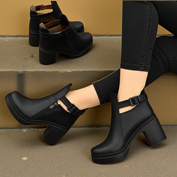 كندرة طبي جلد طبيعي ارتفاع كعب 8 سم - اسود