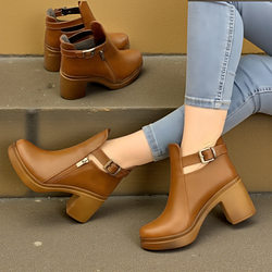 كندرة طبي جلد طبيعي ارتفاع كعب 8 سم - عسلي
