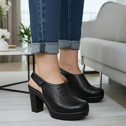 بابوج جلد طبي ارتفاع 9 سم - اسود