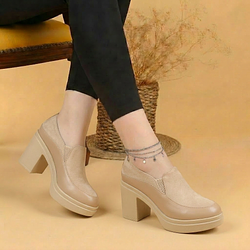 كندرة طبي جلد طبيعي ارتفاع كعب 8 سم - بيج