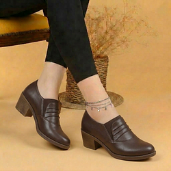 كندرة طبي جلد طبيعي ارتفاع كعب 8 سم - بني