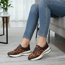 حذاء جلد طبيعي ضد الماء طبي - بيج سترس ذهبي