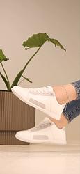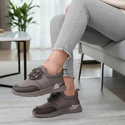 حذاء جلد طبيعي ضد الماء طبي - ابيض سترس فضي
