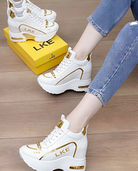 سبورت كعب مخفي 12 سم - ابيض ذهبي