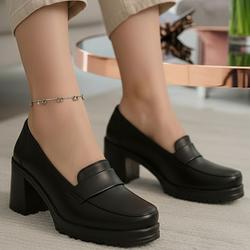 كندرة طبي جلد طبيعي ارتفاع كعب 8 سم - اسود
