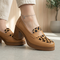 كندرة طبي جلد طبيعي ارتفاع كعب 8 سم - عسلي