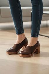 كندرة كعب عريض 6.5 سم - كبتشينو