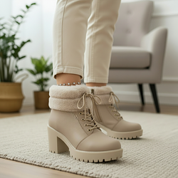 جزمة مبطن فرو 9 سم - بيج
