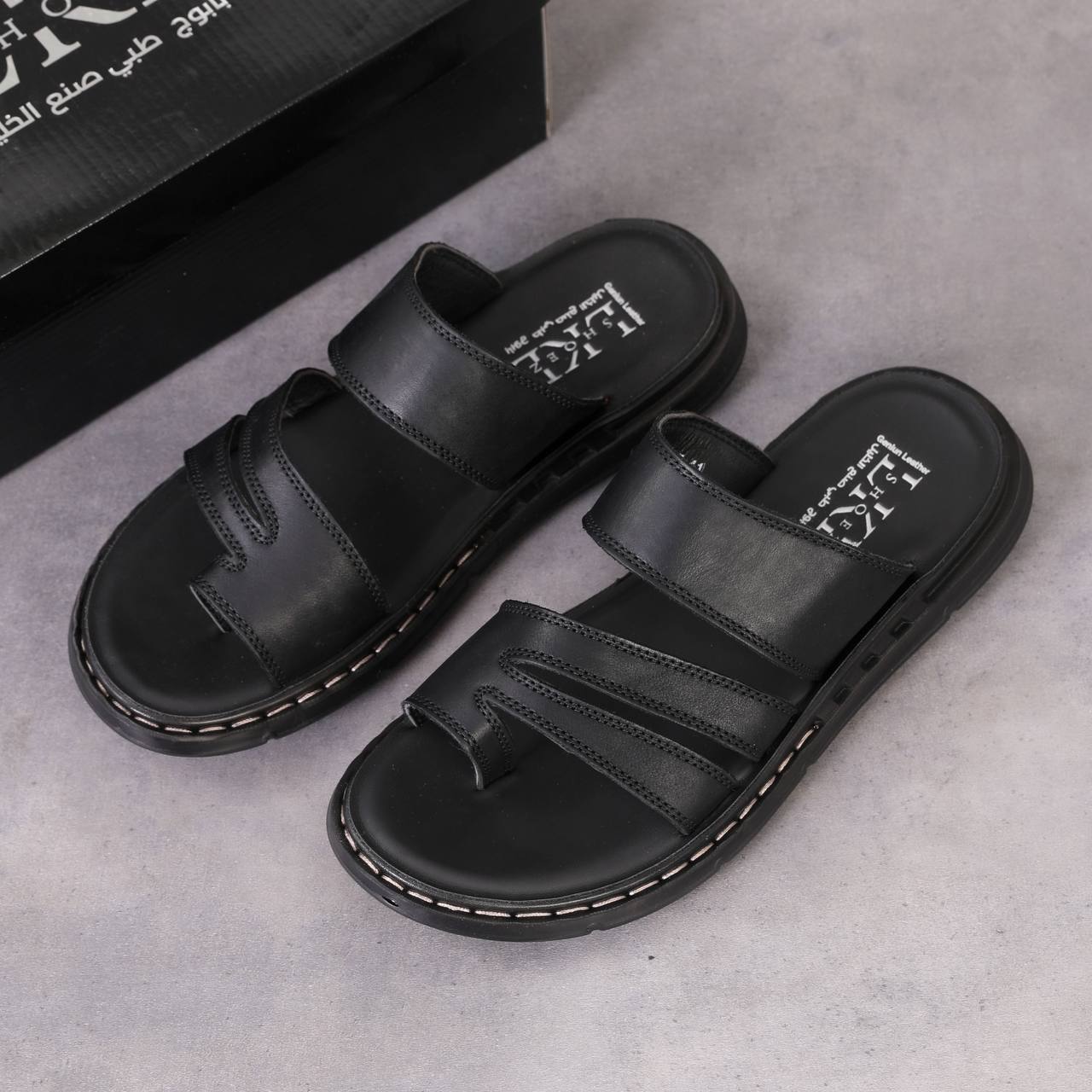 حفاي جلد طبيعي رجالي شغل الخليل - اسود