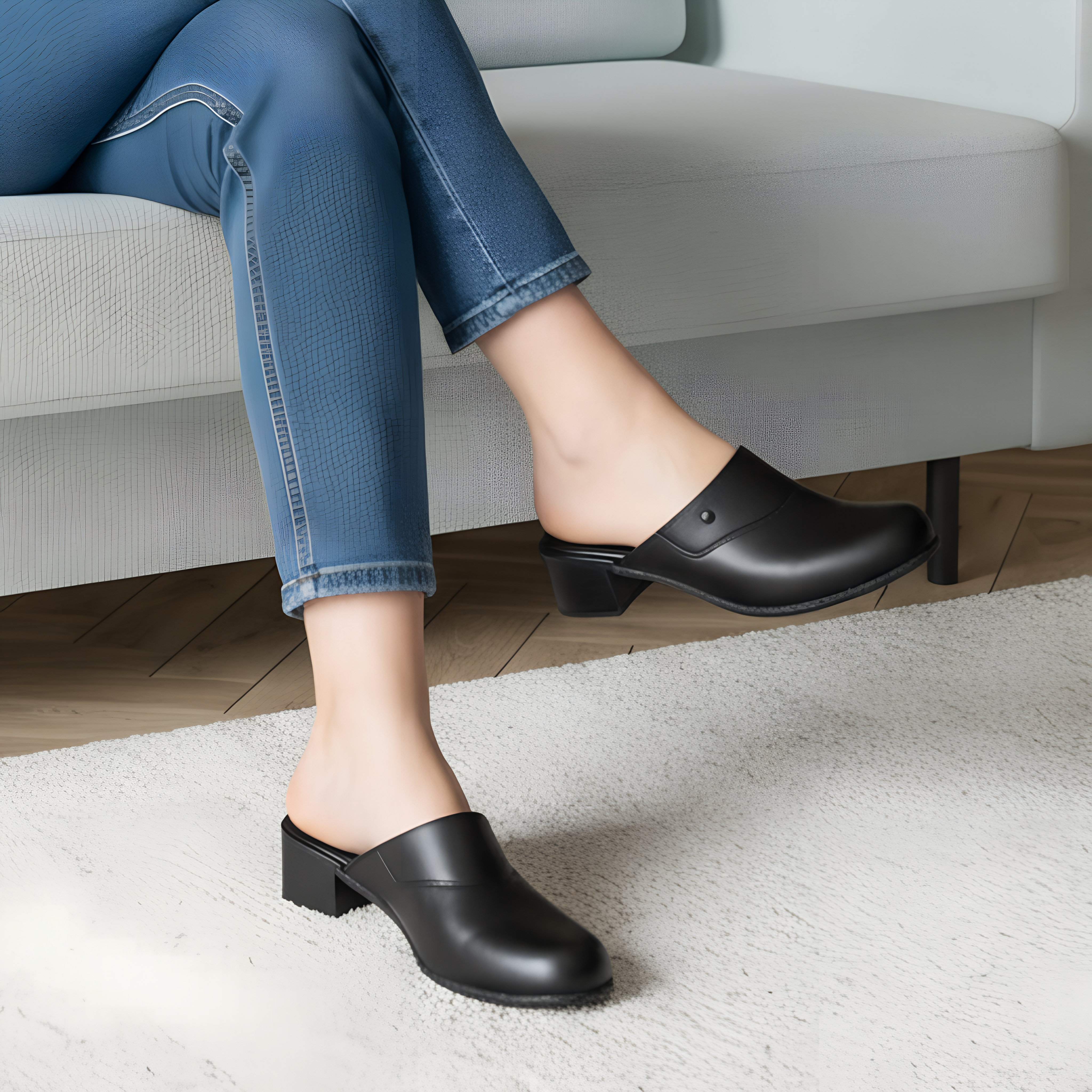 بابوج طبي جلد طبيعي 5 سم - اسود