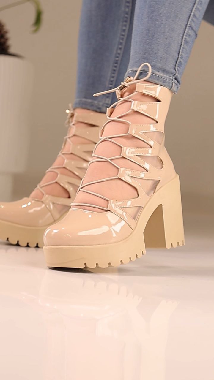صندل كعب عريض 9 سم طبي -بيج