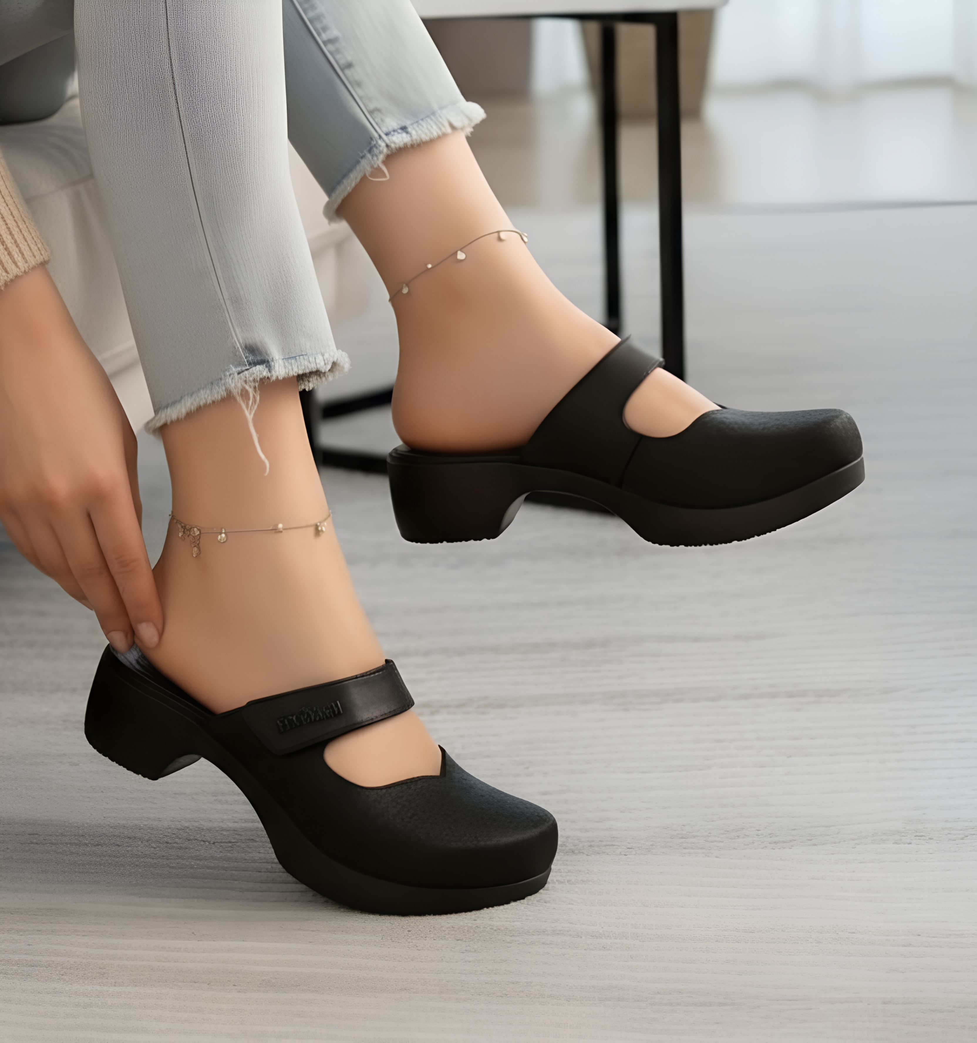 بابوج طبي جلد - اسود
