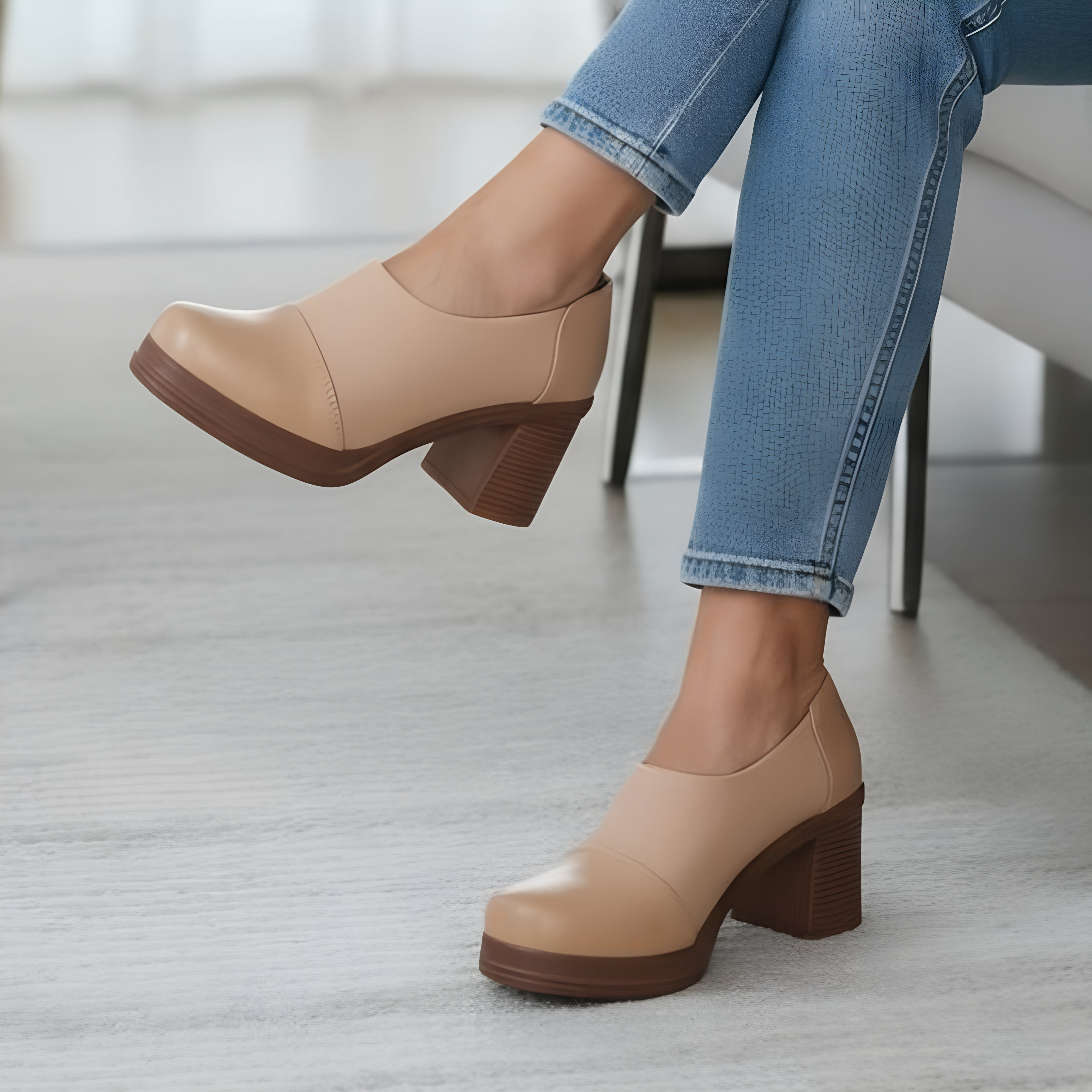 كندرة طبي جلد طبيعي كعب 7.5 سم - بيج