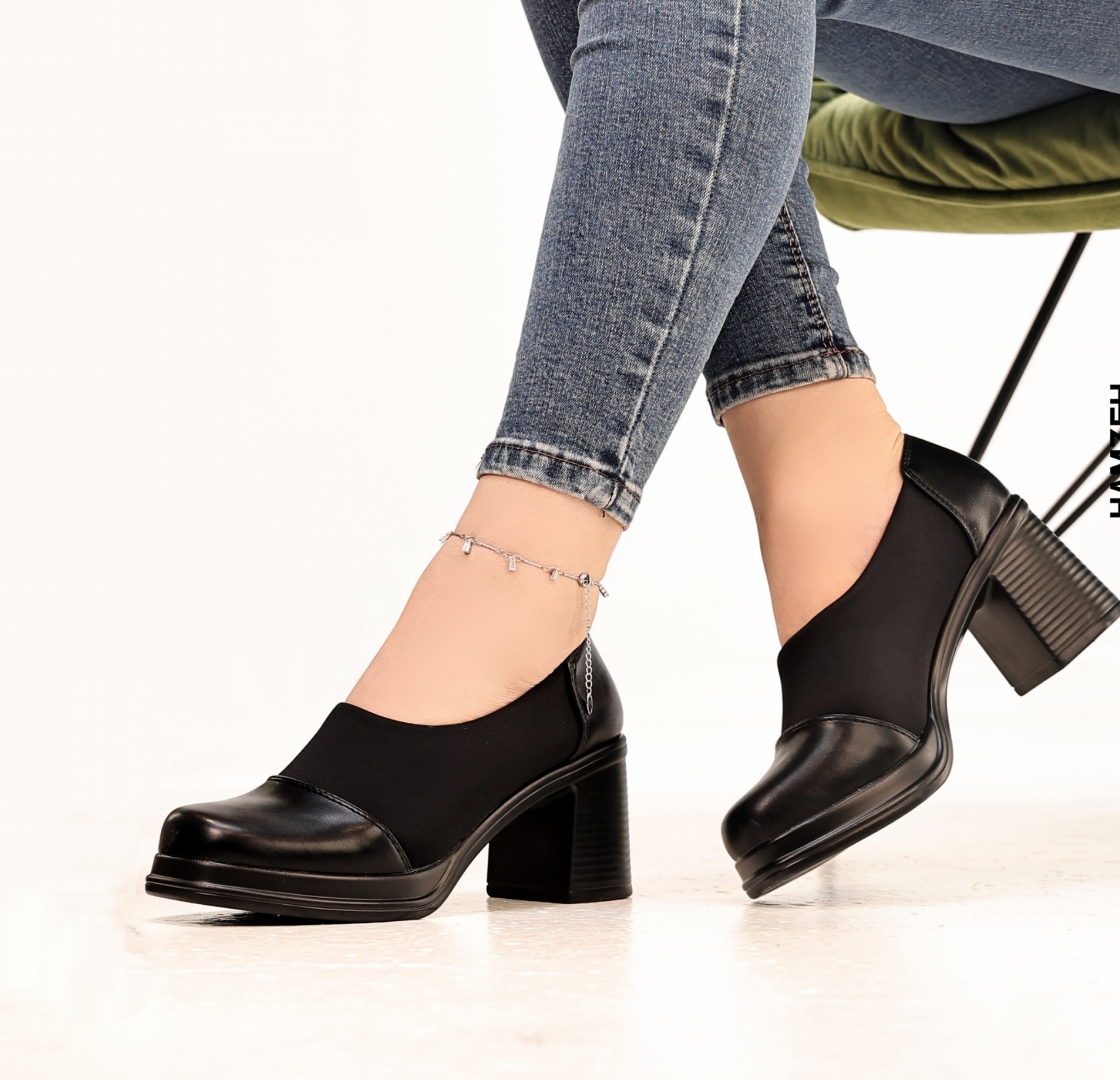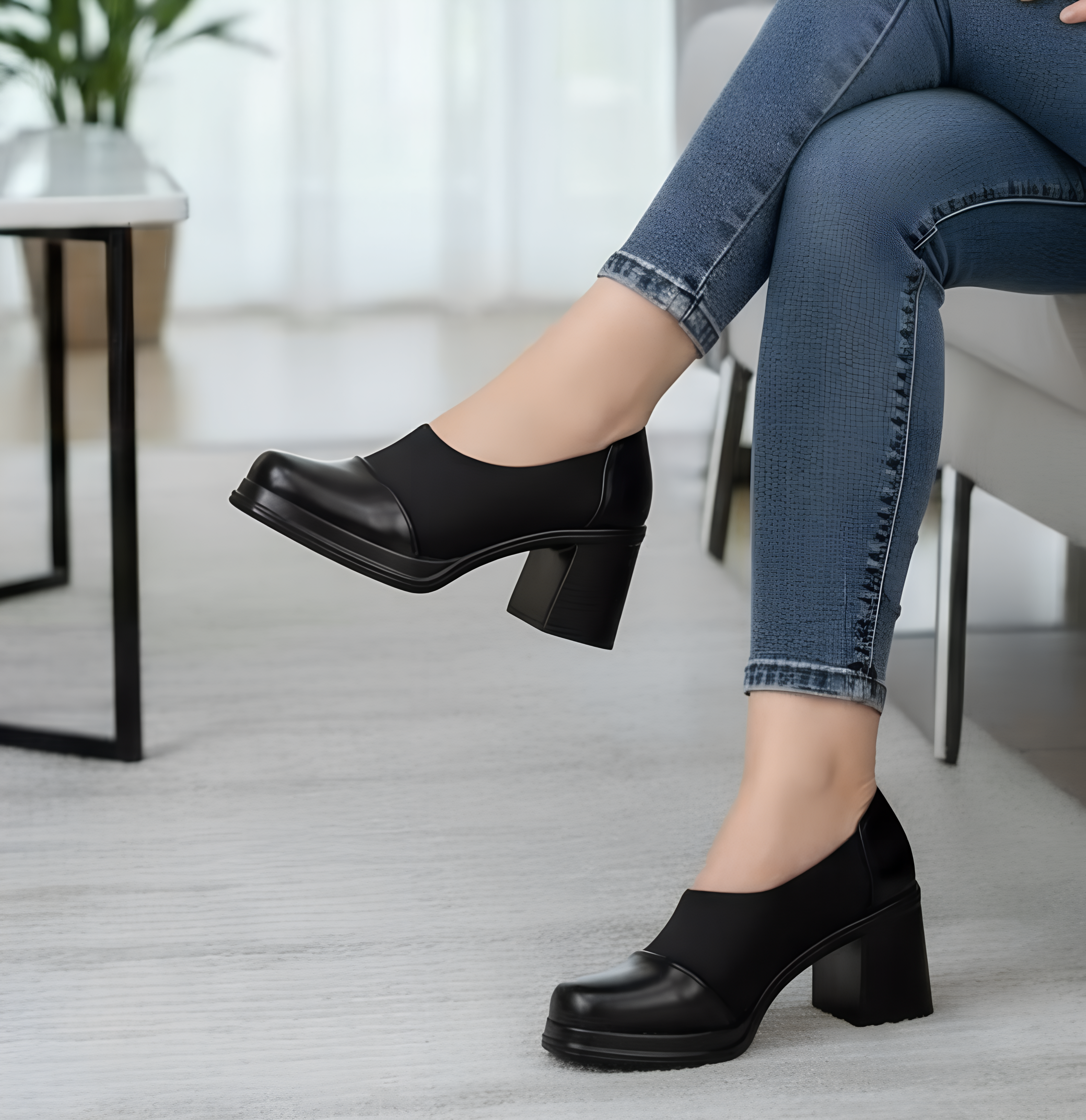 كندرة طبي جلد طبيعي كعب 7.5 سم - اسود