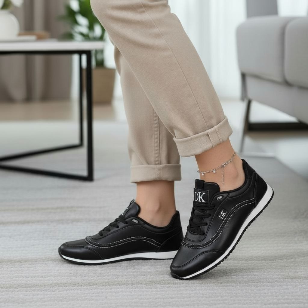 حذاء جلد طبيعي ضد الماء طبي - اسود سترس اسود