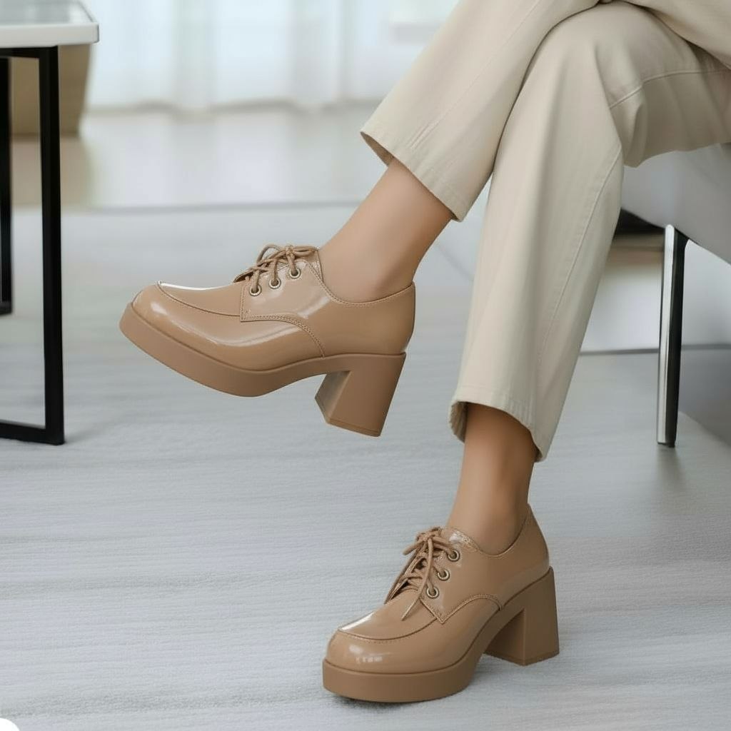 كندرة كعب عريض 6.5 سم - كبتشينو