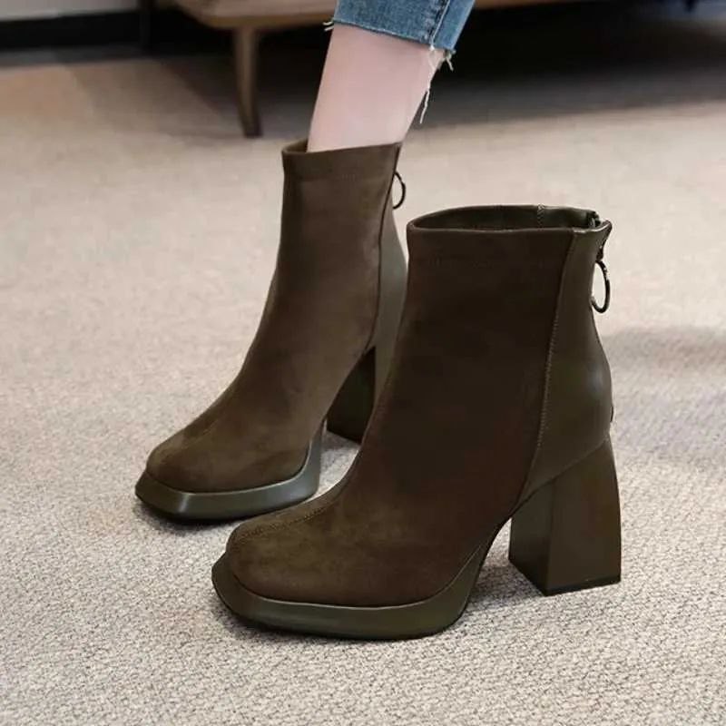 جزمة كموش 8سم - زيتي