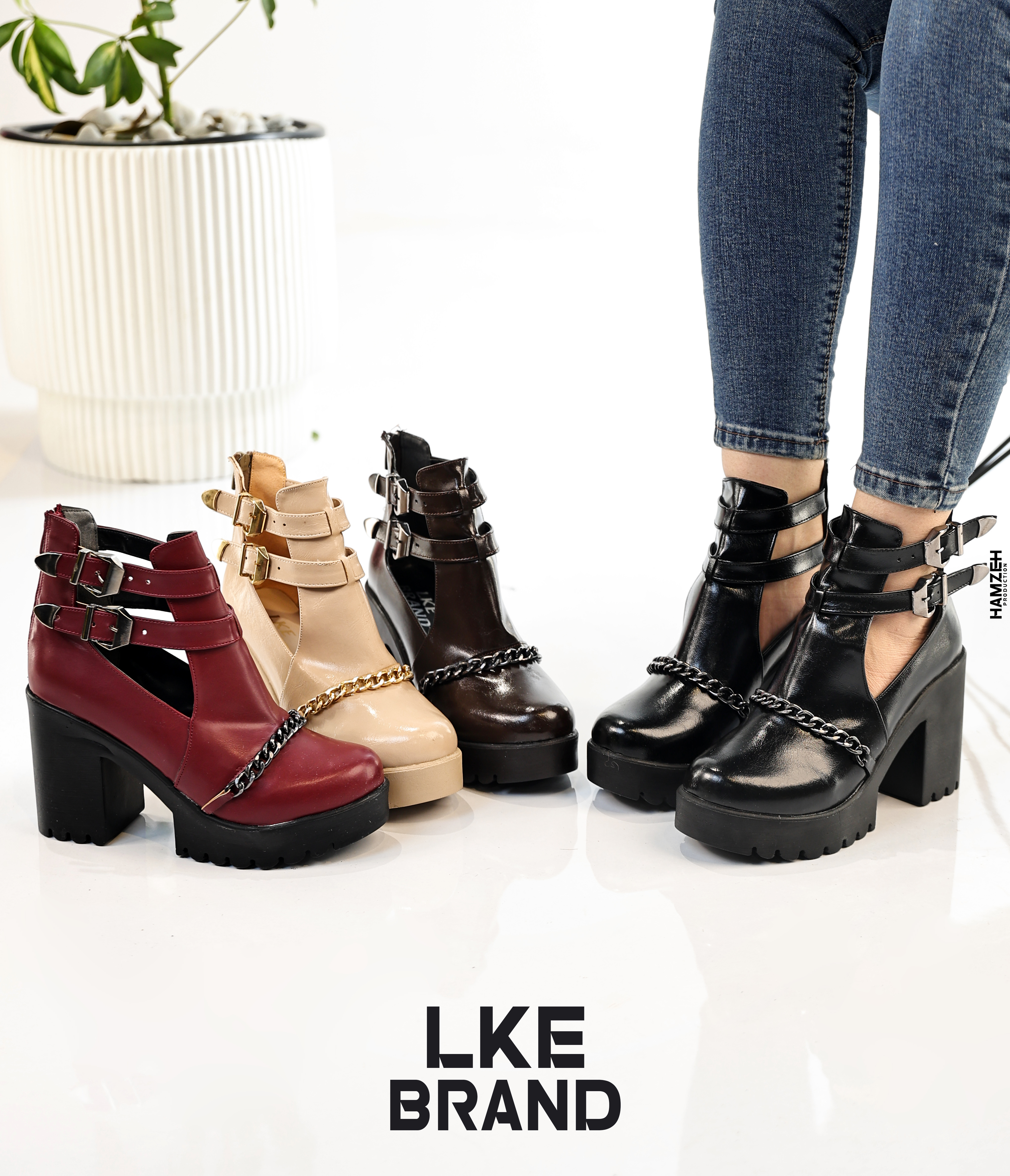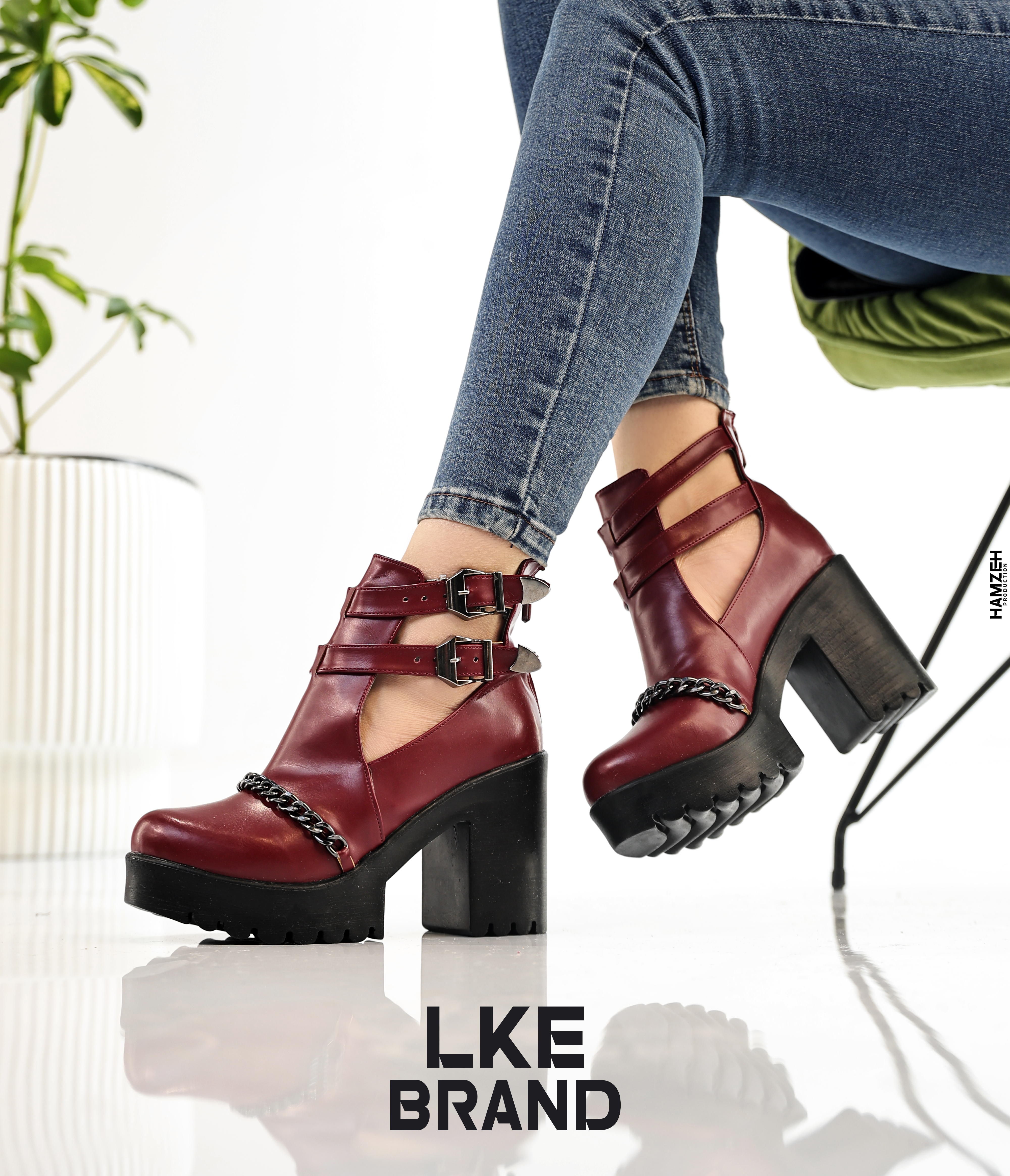 صندل كعب عريض 9 سم طبي سحاب خلفي - برجندي