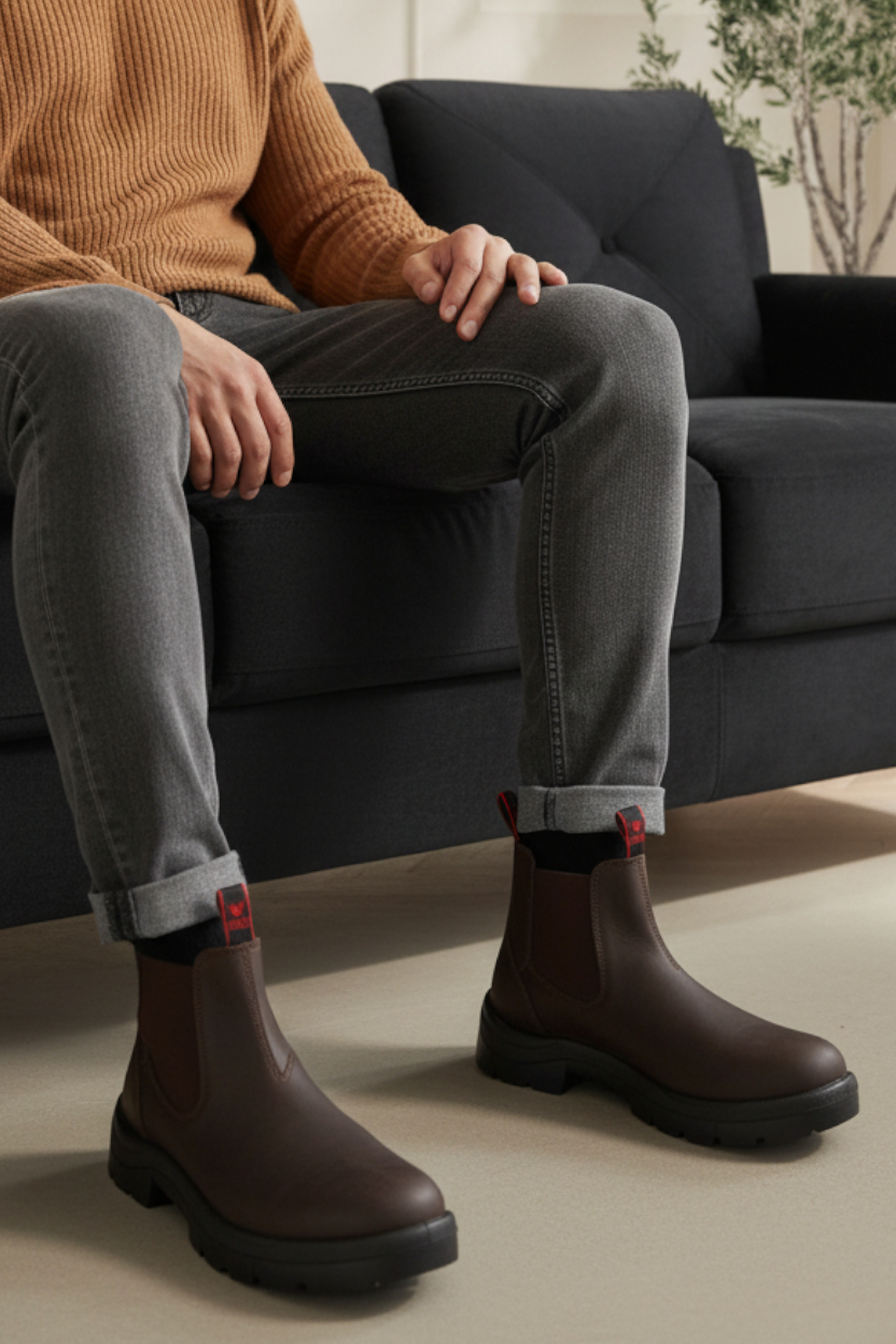 بسطار سبايدر شغل الخليل جوده عالية جلد طبيعي - بني