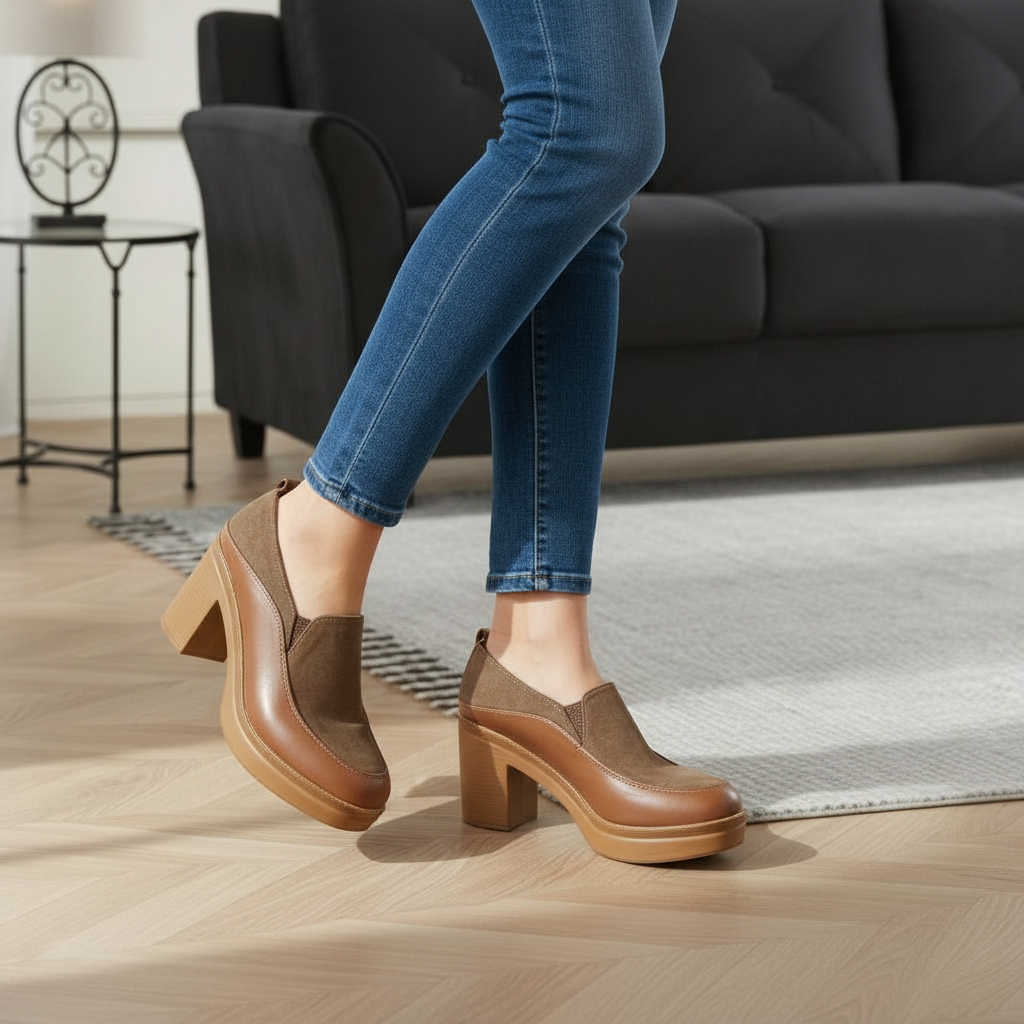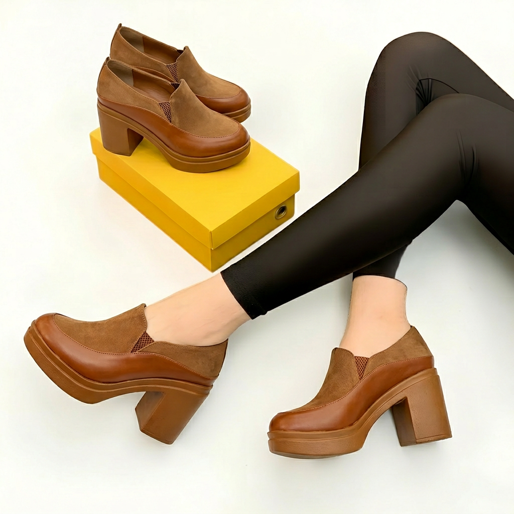 كندرة طبي جلد طبيعي ارتفاع كعب 8 سم - عسلي