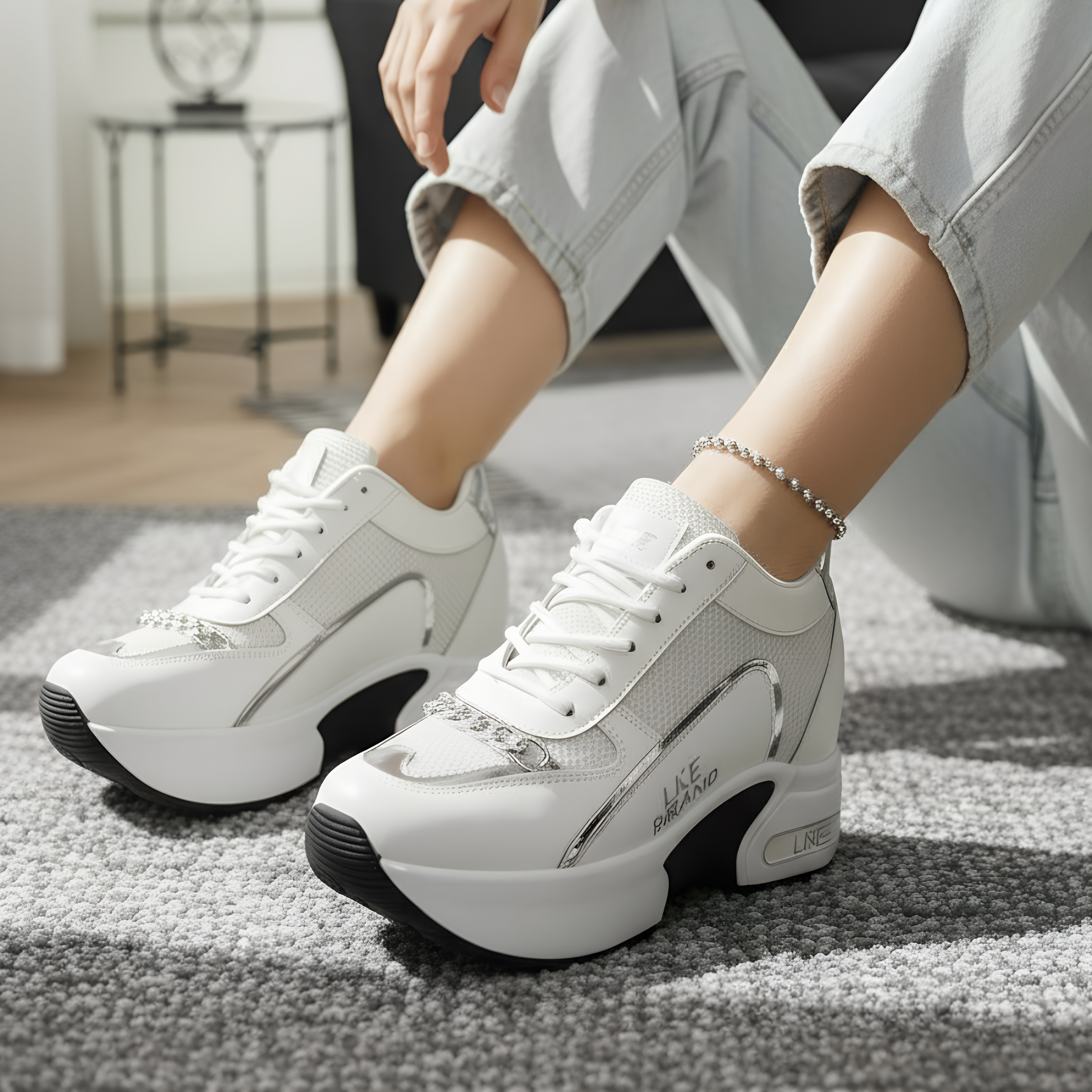 سبورت كعب مخفي 12 سم - ابيض فضي