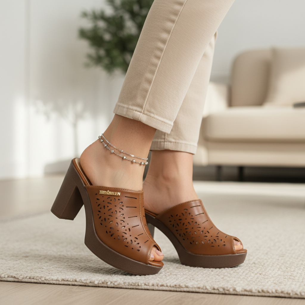 بابوج جلد طبي ارتفاع 9 سم - عسلي