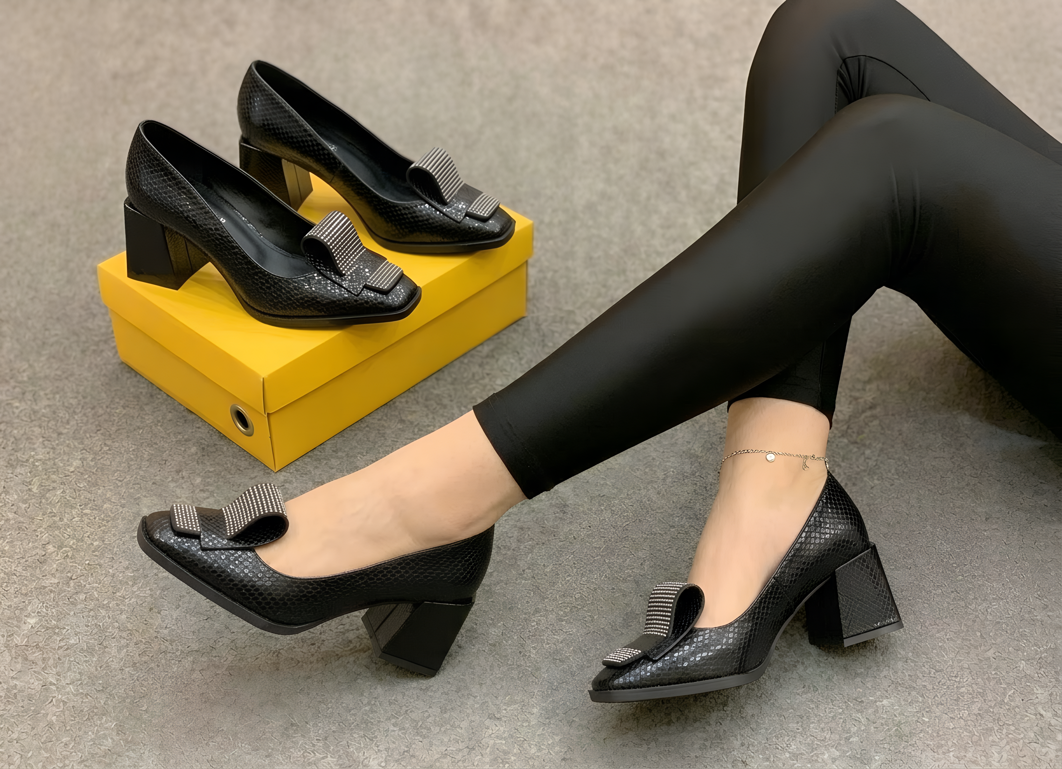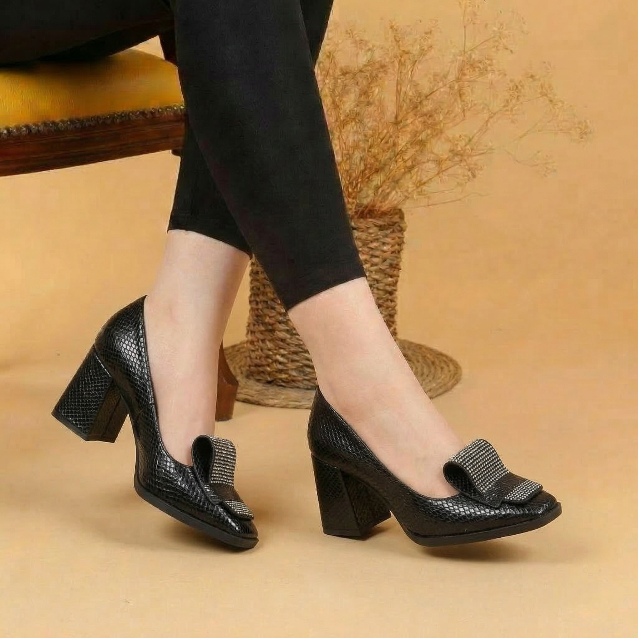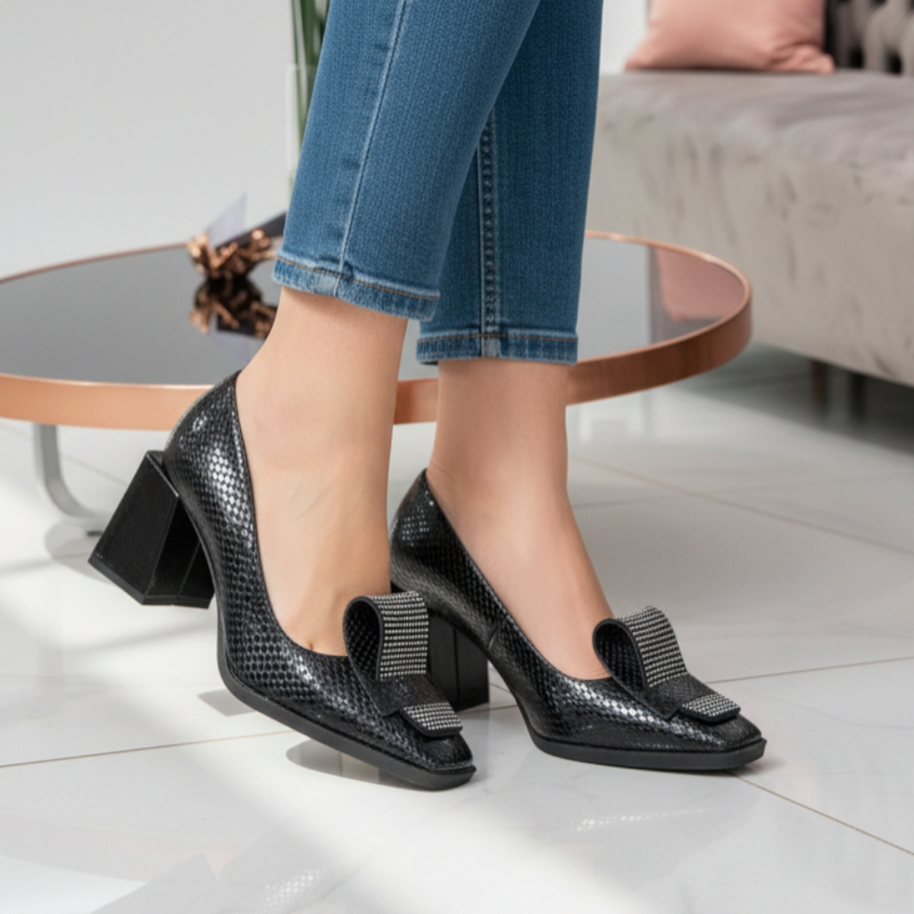 كندرة نسائي كعب عريض - اسود