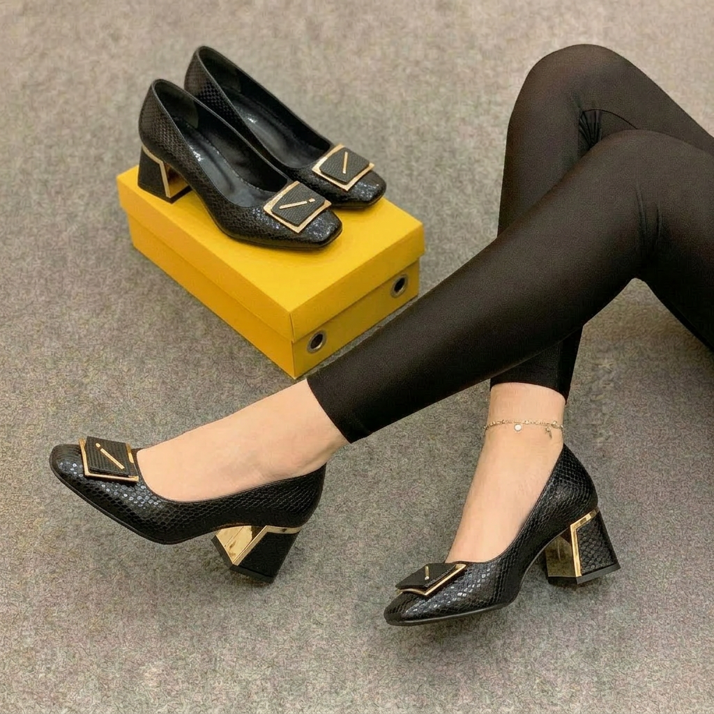 كندرة كعب عريض - اسود مبزر