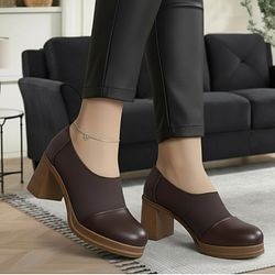 كندرة طبي جلد طبيعي ارتفاع كعب 8 سم - بني