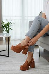 كندرة طبي جلد طبيعي ارتفاع كعب 8 سم - عسلي