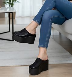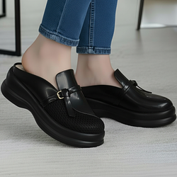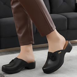 بابوج طبي جلد طبيعي - اسود نعل اسود