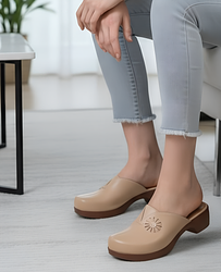 بابوج طبي جلد طبيعي 5 سم - بيج