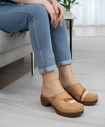 بابوج طبي جلد طبيعي 5 سم - عسلي
