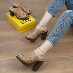 صندل خريفي كعب 9 سم - بني