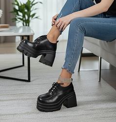 كندرة طبي جلد طبيعي ارتفاع كعب 8 سم - اسود