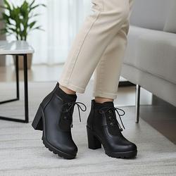 جزمة جلدية نسائي - اسود